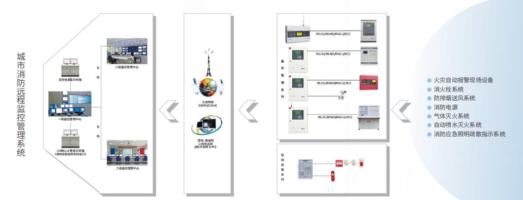 海灣GST119NET城市消防遠程監控管理系統,以現代通信和網絡傳輸技術為基礎結合語音對講、視頻聯動確認,WEB信息發布等多種先進手段,可以對包括城市區內重點單位、大型室內娛樂場所、高層建筑、地下設施、賓館、商場、石化企業、易燃易爆性質等單位企業的建筑物火災報警系統進行大區域聯網管理,實現有效監管、快速報警,確保了火災探測報警系統和消防安全設施正常運行,提高火災探測報警系統的可靠性、降低誤報率;同時通過傳輸火災探測報警系統的設備運行數據和報警信息,為消防監管和滅火救援部門提供強有力技術支持,實現消防報警自動化,提高對火災初期的發現和報警速度,準確迅速撲救火災,加速了城市消防管理智能化、網絡化的發展進程,從而提高整體防災減災技術水平和綜合能力。